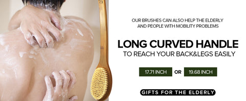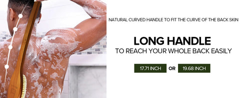 - ✅Can't reach your back?: ICANdOIT Shower Brush has a curved and Long handle made of Bamboo that is around 45 cm (17.71 inch) long, it can be reached and washed your back even all parts of the body easily. In addition, there is a non-slip Soft touch Silicon grip and a hanging rope at the handle.